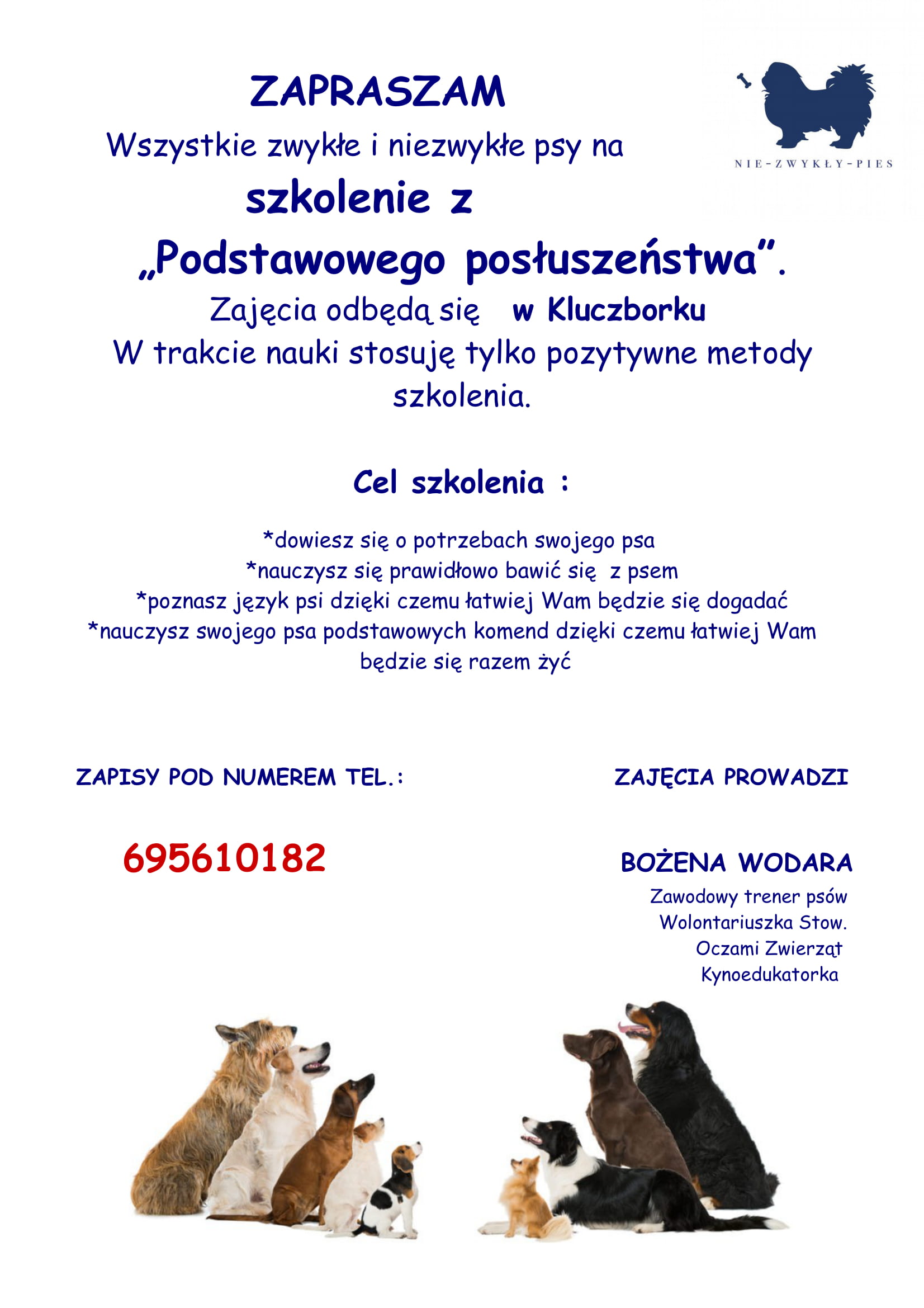 Wszystkie szkolenia prowadzone w Nie – zwykłym – psie (tu znajdziesz nasz Fanpage) opierają się na metodach pozytywnych, tzn. że nie używam obroży elektrycznych, kolczatek, łańcuszków zaciskowych. Pies, który się szkoli ma, współpracować z przewodnikiem i ze mną – do tego potrzebne są zrozumienie, akceptacja i zaufanie – a nie strach i przemoc.